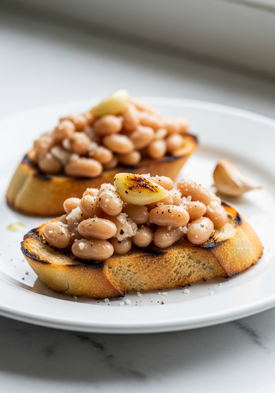 Spoon 2 teaspoons of the white bean puree onto each slice of bread and finish with a sprinkle of fresh thyme for garnish.