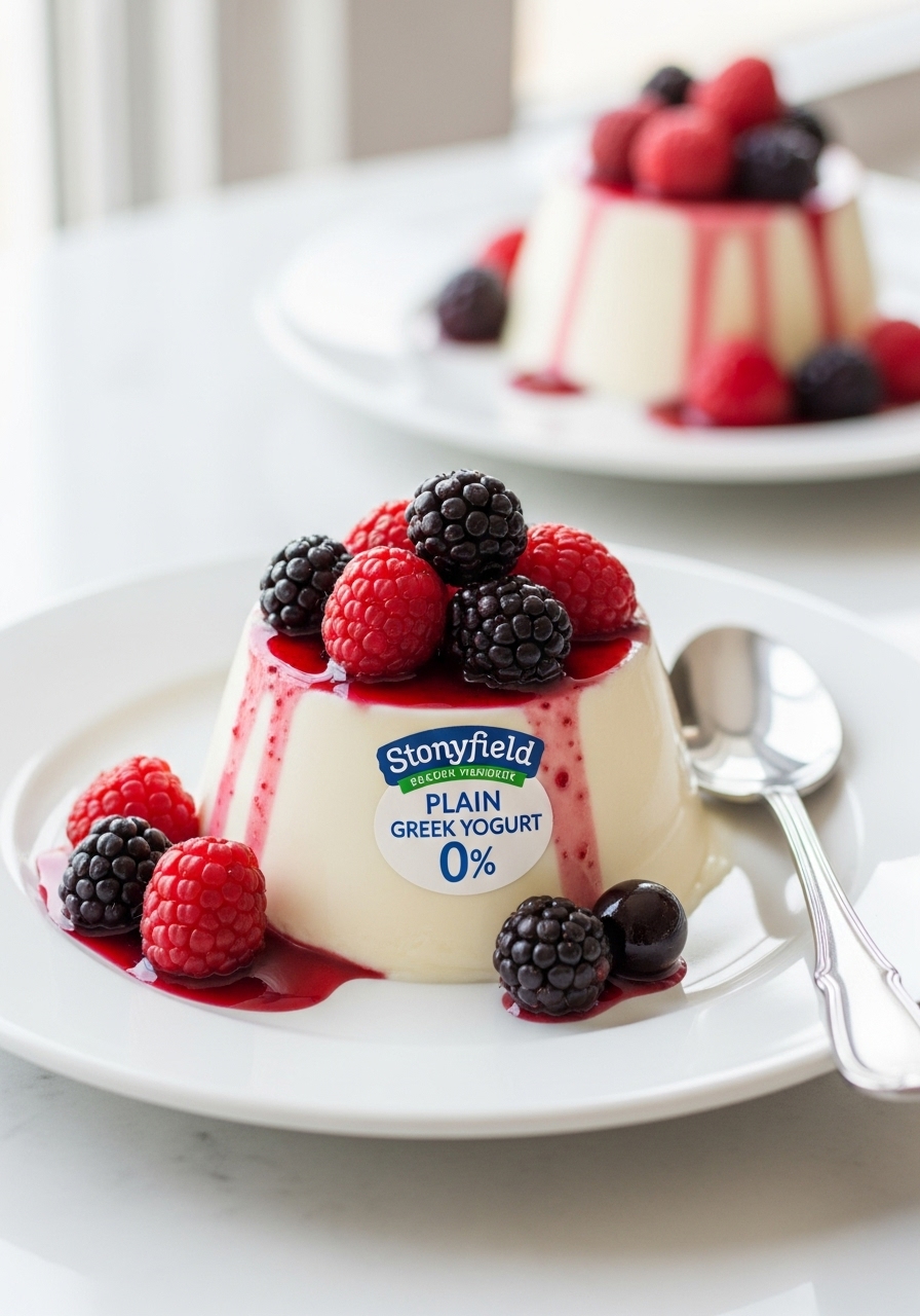 Indulge in this delightful Yogurt Panna Cotta, a wonderfully smooth and velvety treat. The refreshing zest of yogurt beautifully complements the sweetness of ripe, fresh berries.